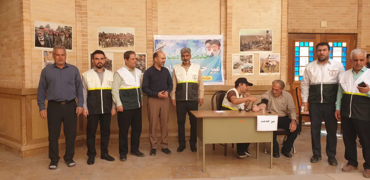 برگزاری میز خدمت شبکه بهداشت و درمان در حاشیه نماز جمعه شهرستان سرپل ذهاب به مناسبت هفته دفاع مقدس