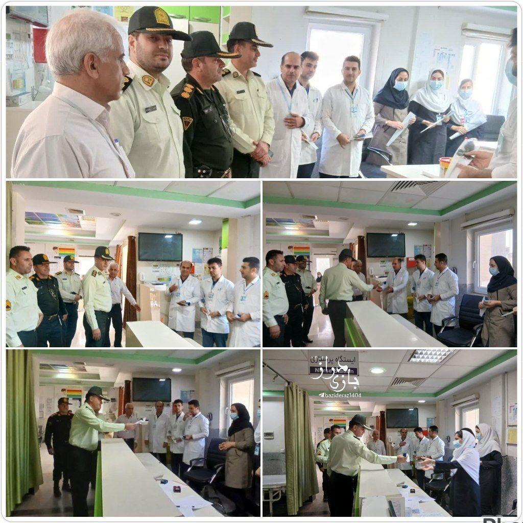 به مناسبت فرارسیدن میلاد با سعادت حضرت زینب (سلاماللهعلیها) و بزرگداشت روز پرستار، فرمانده انتظامی به همراه جمعی از پرسنل نیروی انتظامی با حضور در بیمارستان شهدا، این روز را به پرستاران پرتلاش و فداکار تبریک گفتند.